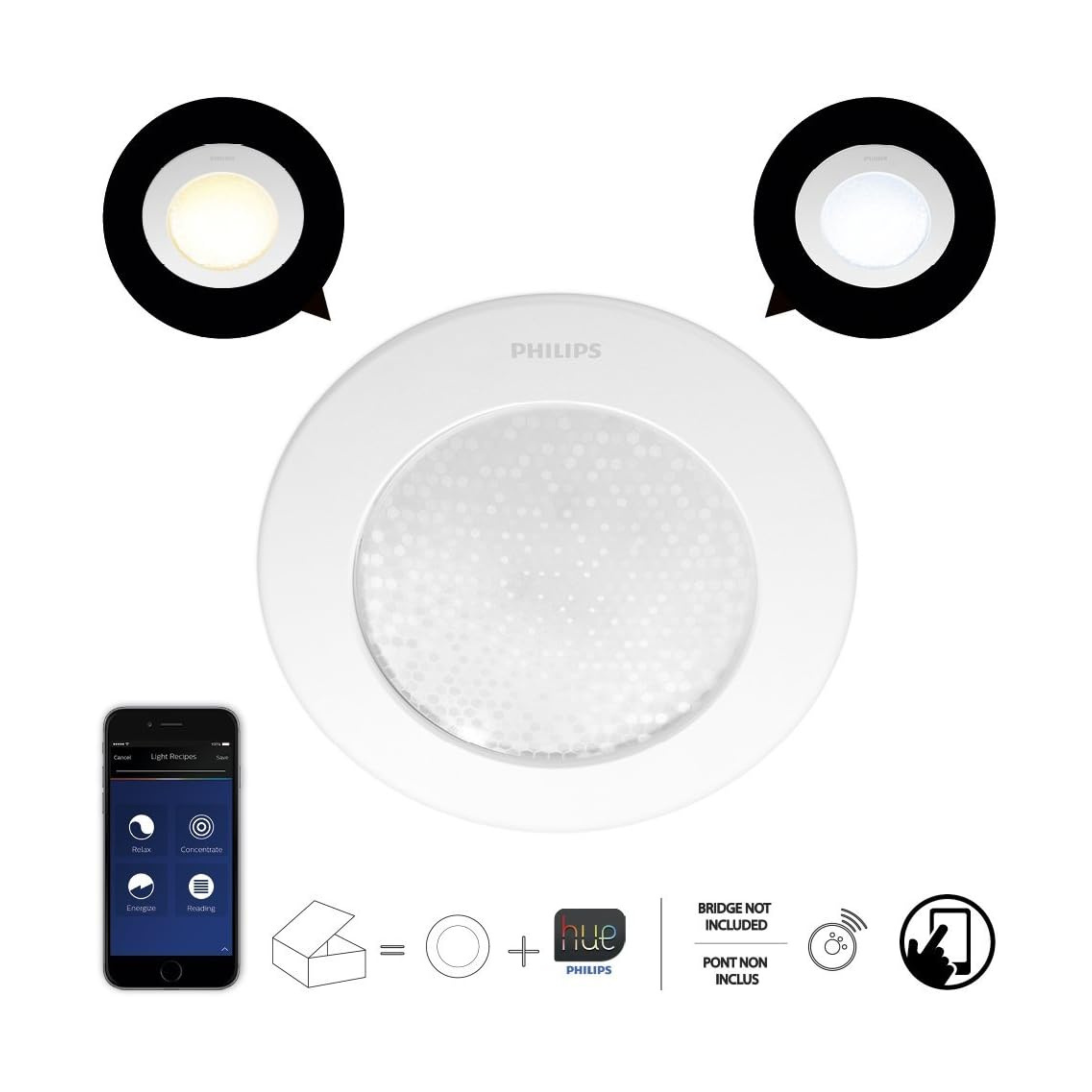 - Install it anywhere you would a standard recessed downlight and pair it with the Hue Bridge, allowing you to control this and other Philips Hue lights via the Philips Hue app.