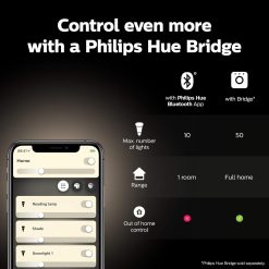 Add a Philips Hue bridge (sold separately, optional) to your cart and unlock full home control, either when you’re home or away.